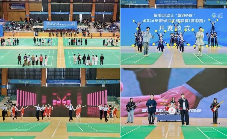上午9时,开赛仪式正式举行。安徽省体育局党组书记、局长单强宣布皖美运动汇2026安徽省羽毛球联赛开赛。中共无为市委书记匡健致欢迎辞。安徽省体育局党组成员、副局长秦旭,安徽省商务厅党组成员、副厅长张弘强,共青团安徽省委副书记张健,安徽广播电视台党委委员、副台长章炜,芜湖市人民政府党组成员、副市长朱子,芜湖市体育局党组书记孙万胜出席开赛仪式。羽毛球奥运冠军黄雅琼、世界冠军刘雨辰,羽毛球运动推广达人王小羽受邀出席活动,现场与球迷互动并为参赛选手加油助威。