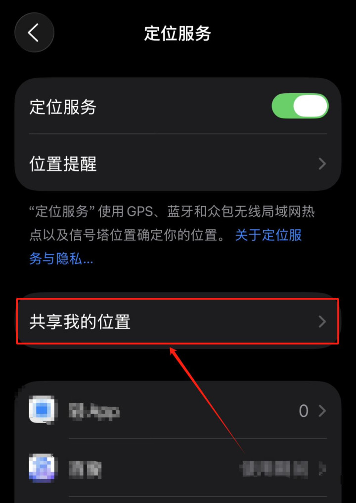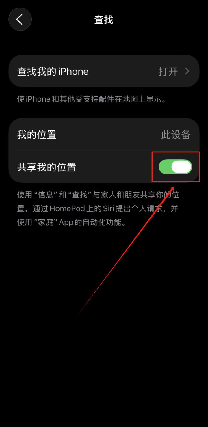 关闭“共享我的位置”后的滑动开关。