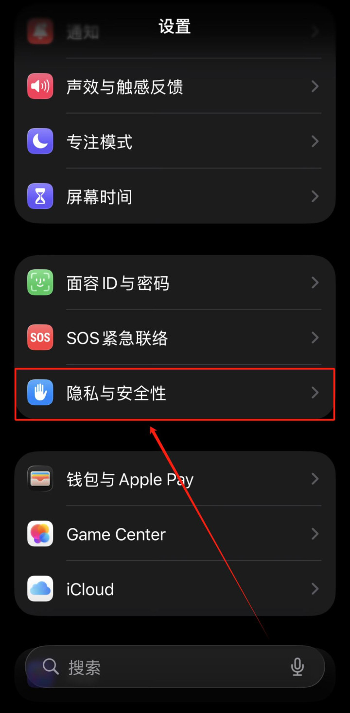 点击“隐私与安全性”选项。