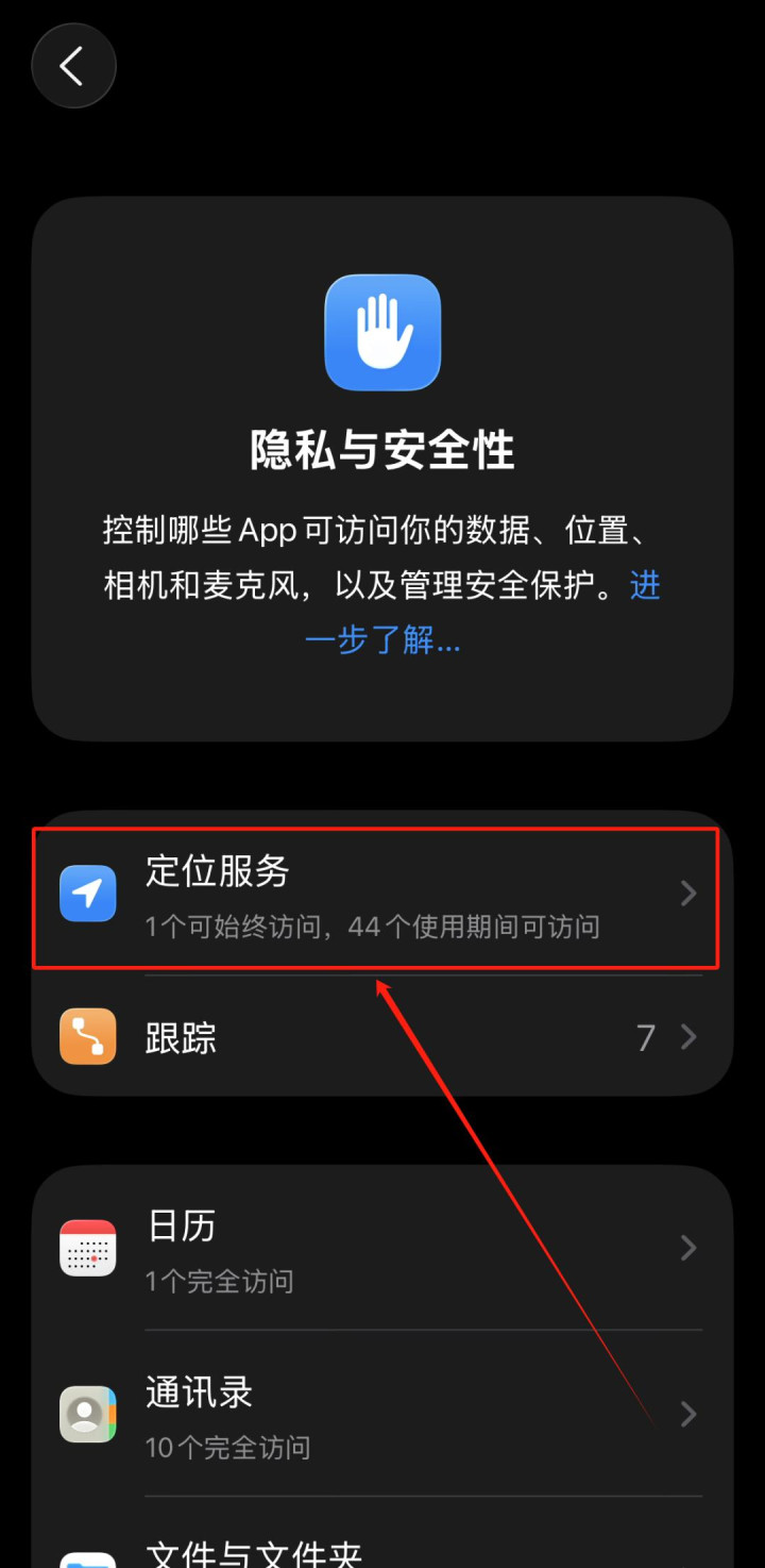 点击“定位服务”选项。