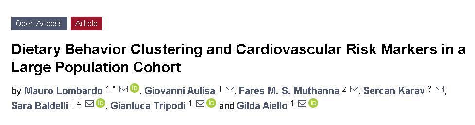 ①Lombardo M, Aulisa G, Muthanna FMS, et al. Dietary Behavior Clustering and Cardiovascular Risk Markers in a Large Population Cohort. Nutrients. 2026;18(3):533. Published 2026 Feb 5. doi:10.3390/nu18030533